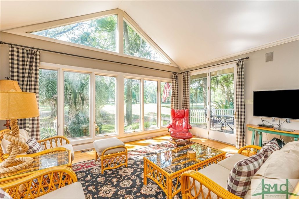 There are impressive lagoon views and golf vistas from this well-maintained patio home at 10 Coventry in The Landings. GA.