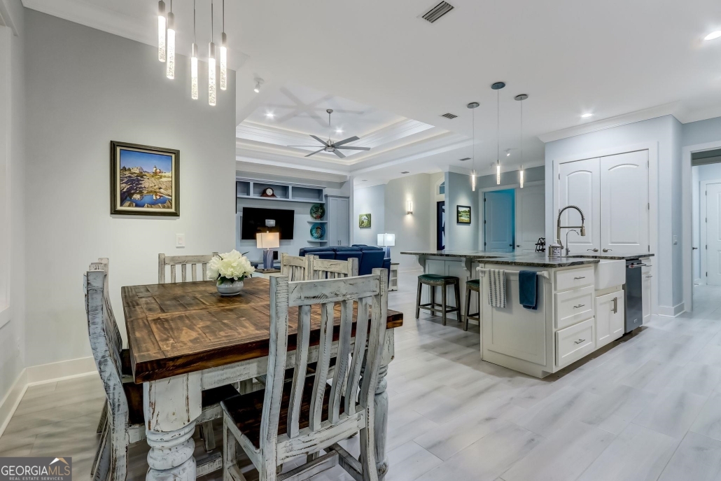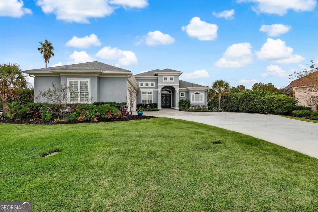 This 2,378-sf custom home at 1004 Brown Thrasher Point in Osprey Cove, GA is well-sited on a half-acre lot that looks out onto a large pond.