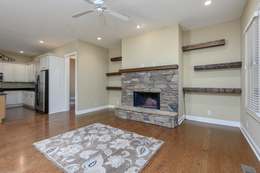 - Kitchen w/ quartz countertops, stainless steel appliances