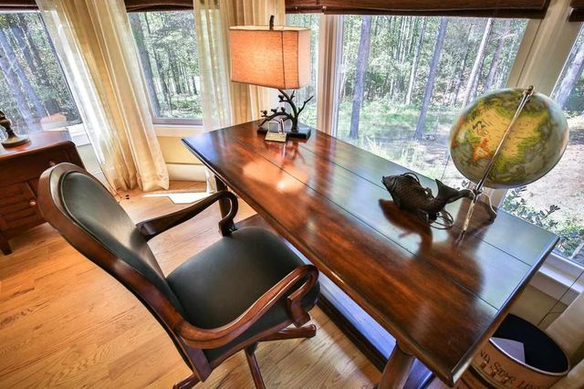 This custom-built home occupies a level lot with mature hardwoods surrounding it in a private natural setting. Golf cart path leads directly to the clubhouse for easy access to all club amenities.
