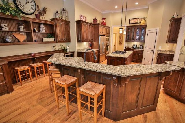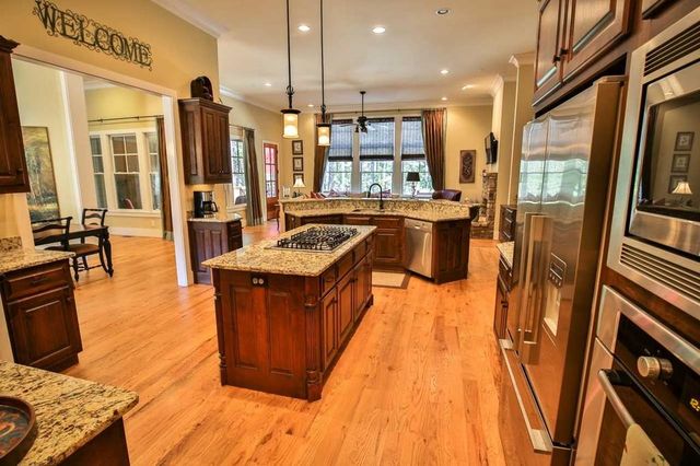 - Gourmet kitchen includes a gas cooktop, large island and buffet serving station