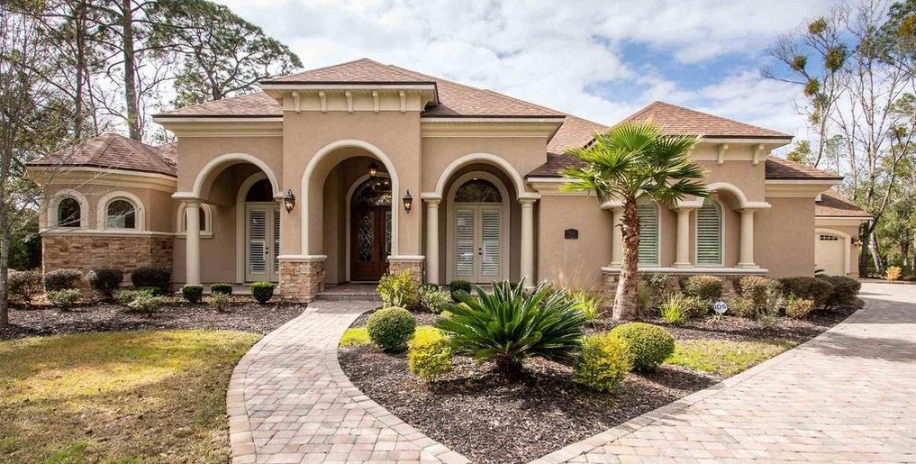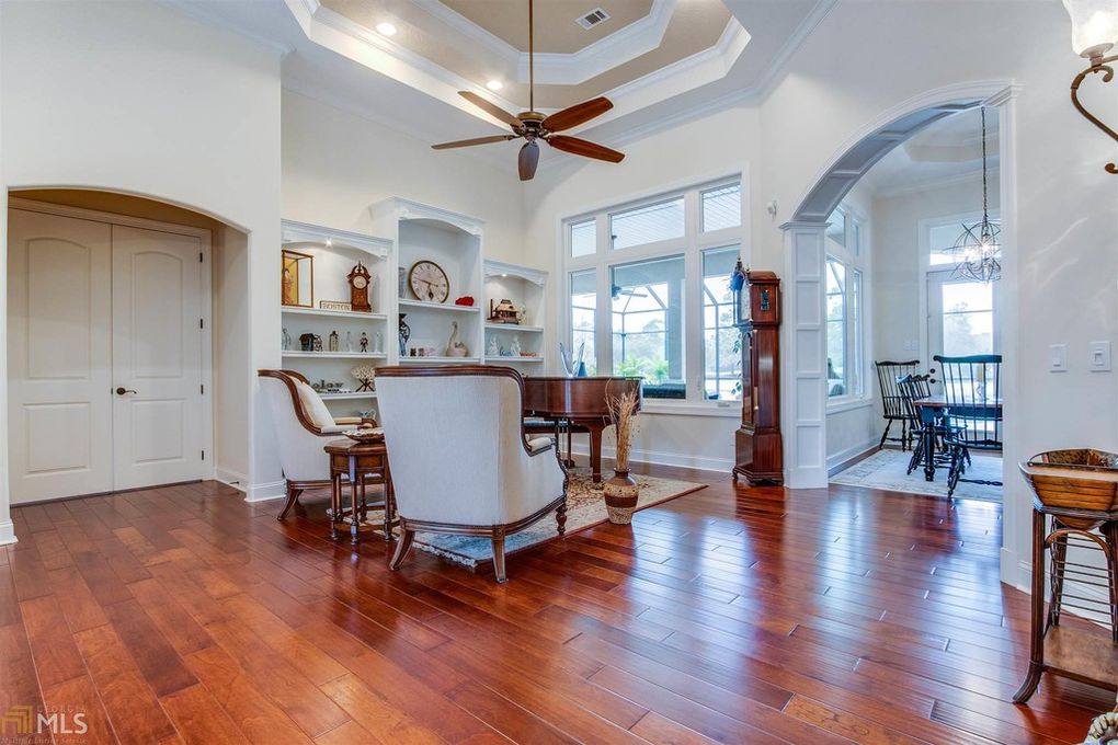 This new custom residence at 104 Cormorant Court has a prestigious Island Estates address within Osprey Cove. There are lovely long-range water views from most rooms in the 2,775-sf home.