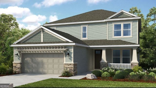 This new-construction home at 105 Chinquapin Drive, built on the La Palma floor plan in Osprey Cove, GA, is scheduled for December completion.
