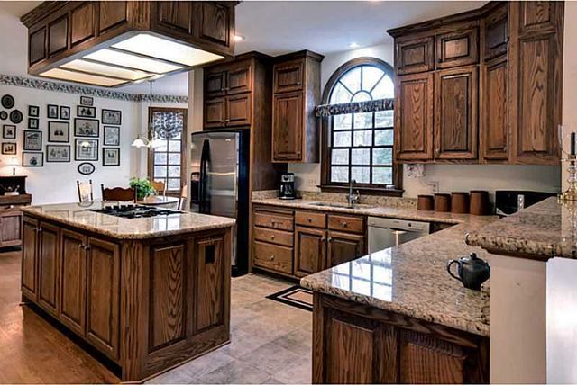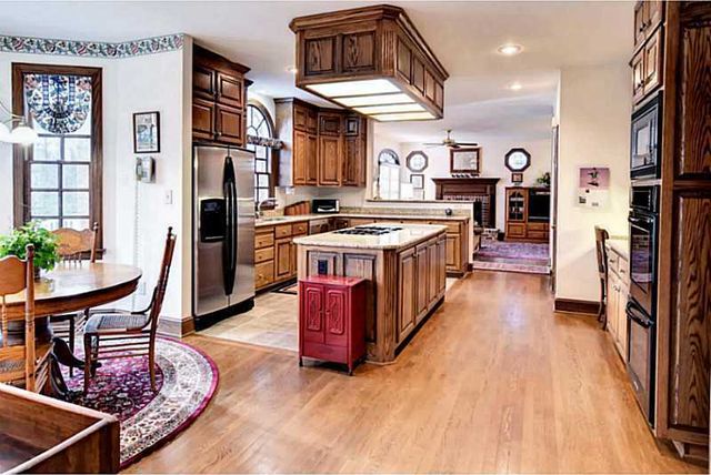 - Kitchen with dual ovens, granite counters and extensive cabinet space