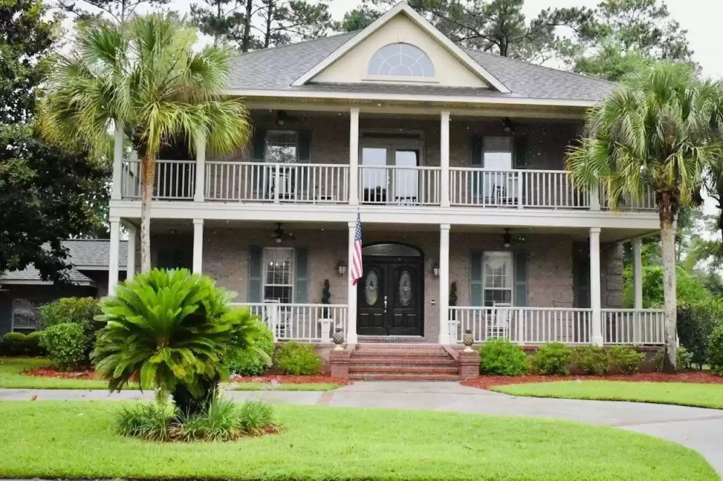 - Traditional Southern style with wraparound porches