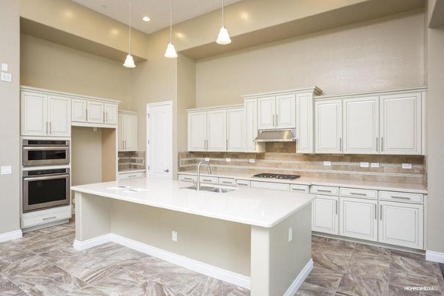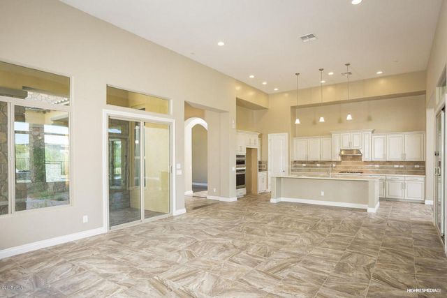 - 12-foot ceilings and spacious island kitchen in desert colors