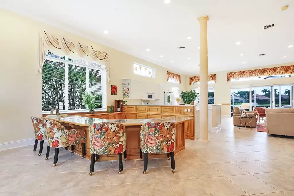 It features a custom-built bar with wooden cabinetry, and a custom wooden built-in in the family room. Send me more about this home in The Club at Ibis!