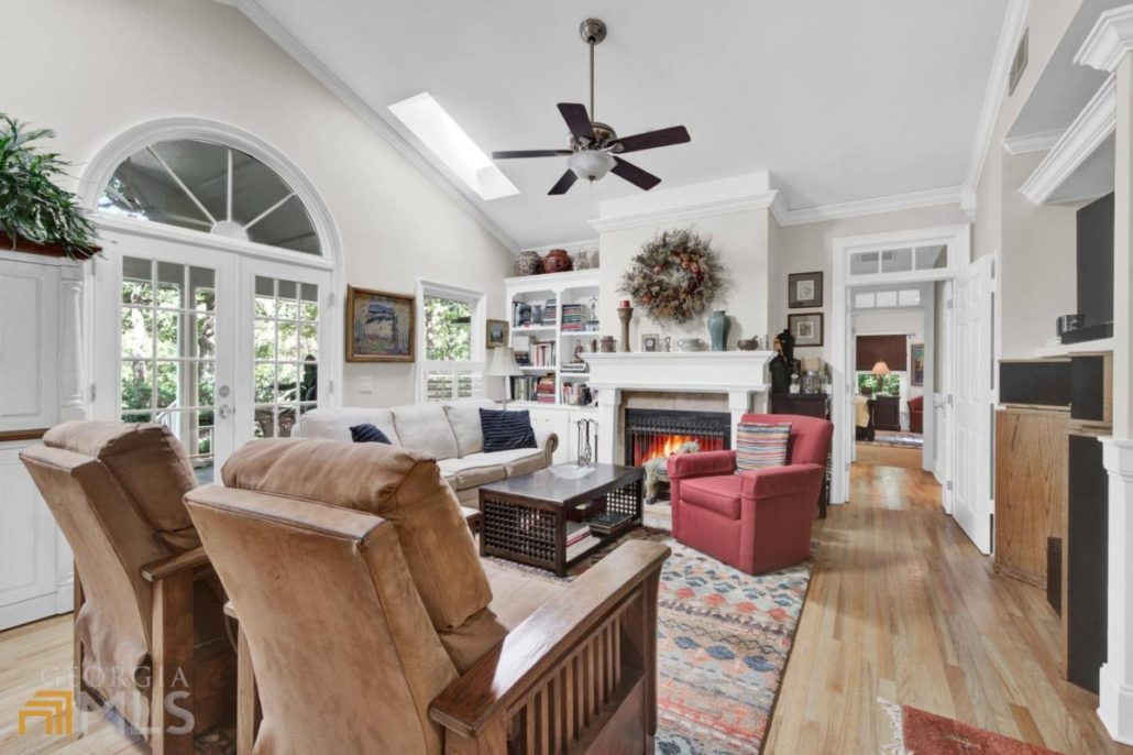 It’s designed around a light-filled great room with fireplace.