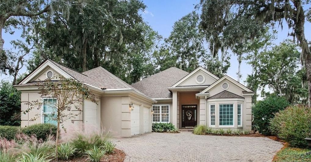 There are expansive views of a scenic lagoon and No. 18 green on the Palmetto golf course from this 2,517-sf home at 11 Becks Retreat, which has designer updates throughout.