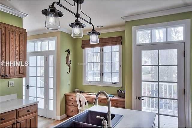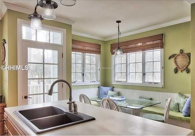 This Lowcountry-style home, with 2,332 sf of living space, offers peek-a-boo Calibogue Sound views and a location just minutes from the beach, ferry and historic lighthouse.