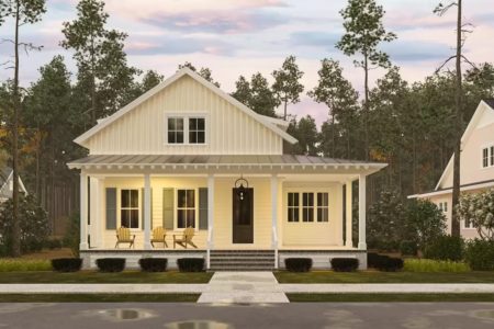 The new home has a front porch, additional screened porch.