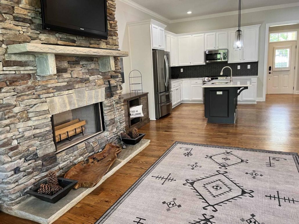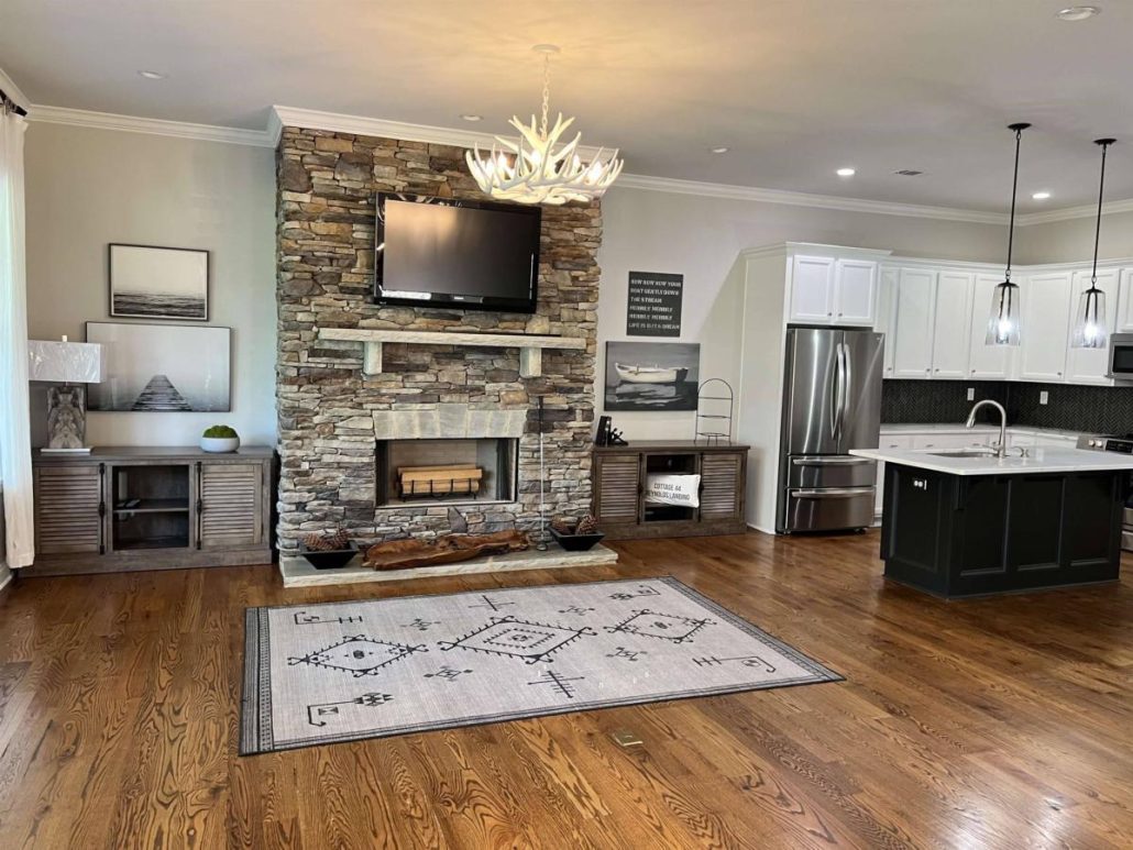 - Great room w/ stacked stone fireplace