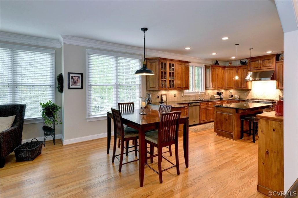The 3,406-sf home’s open floor plan connects the family room, formal dining room and kitchen.