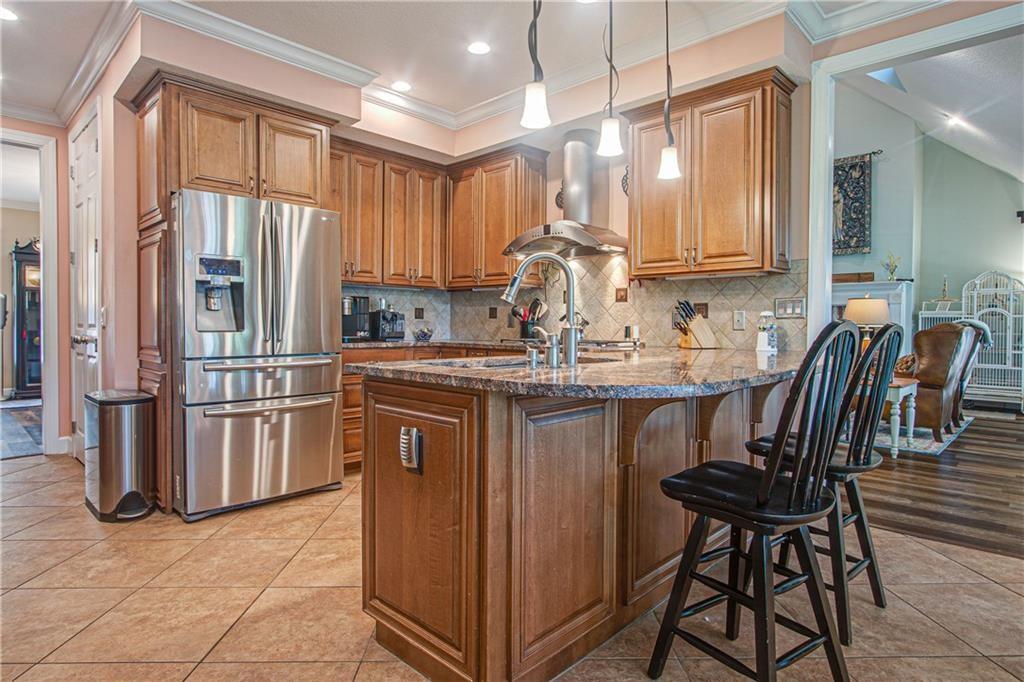 - Vaulted ceilings, gas fireplace w/ brick surround