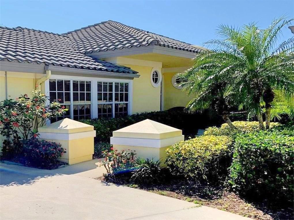 This 1,800-sf patio home at 12306 Harbour Ridge Boulevard in Harbour Ridge features a private water view and an expansive screened pool/Jacuzzi with a landscaped fountain cascading into the pool.