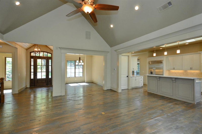 - Ceilings 10 feet or higher, textured wood floors and the rock accents inside and out