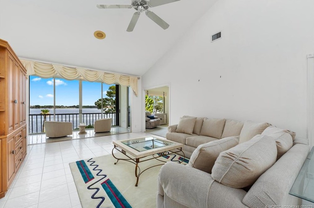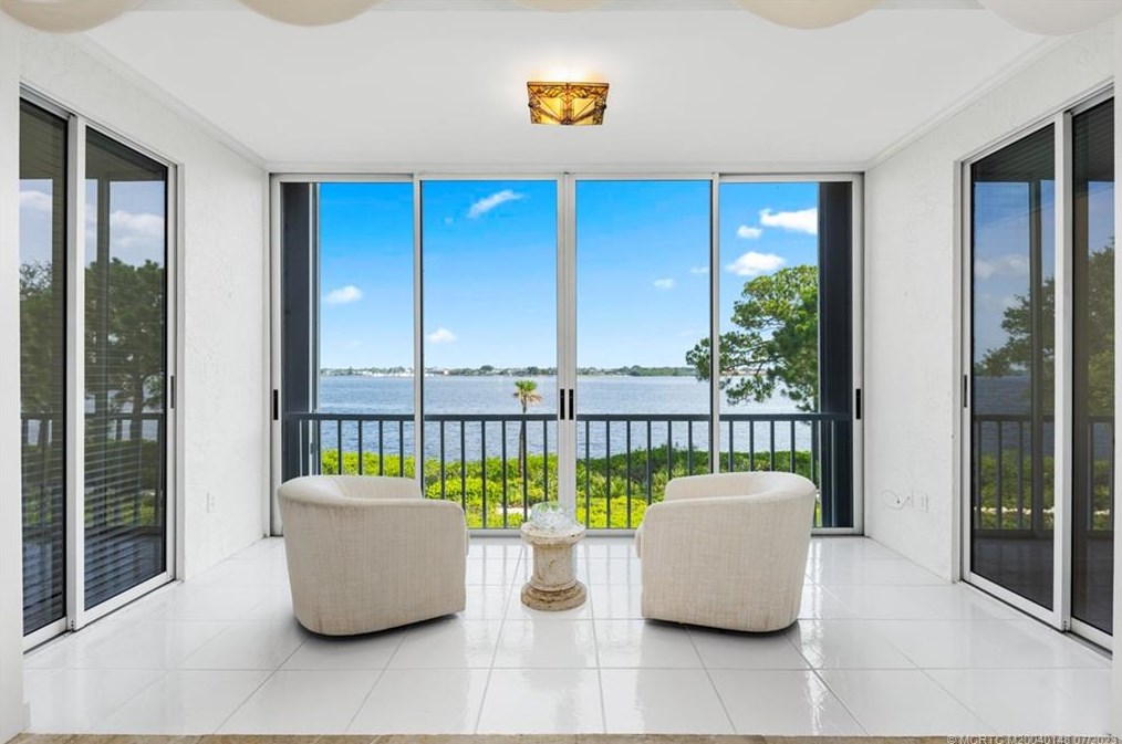 There are prime views of the St. Lucie River from this end-unit condominium at 12408 Harbour Ridge Boulevard Unit 6-2 in Harbour Ridge Yacht & Country Club.