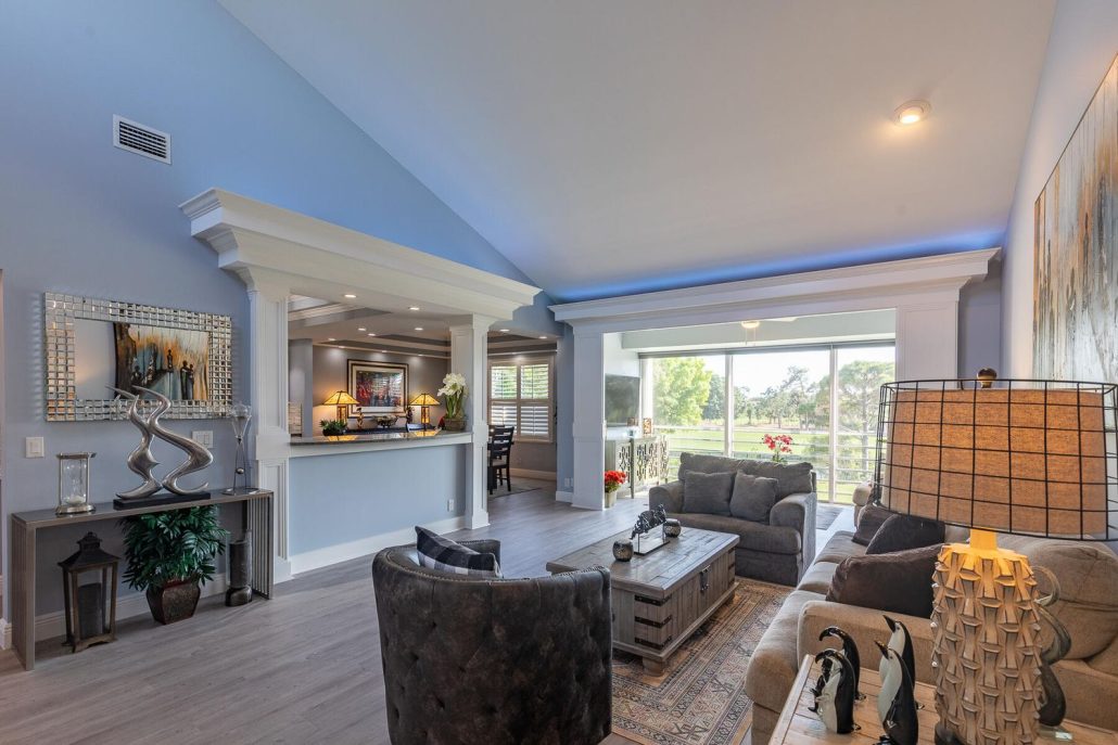 Covered lanais enjoy golf, water and nature views.