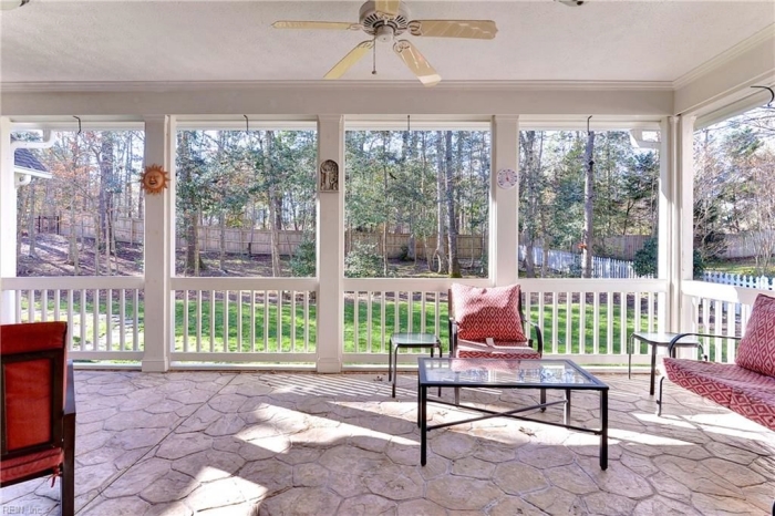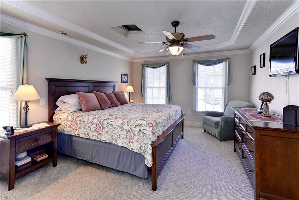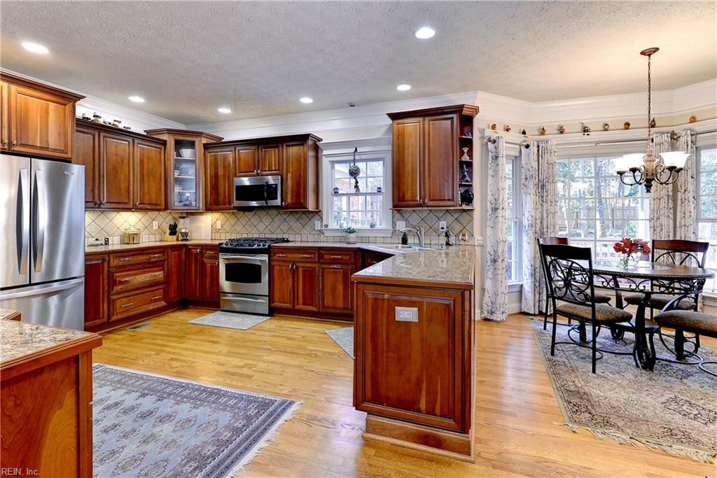 This custom-built, 3,921-sf home at 129 Blackheath in Ford’s Colony, VA is all brick and features an open floor plan with five bedrooms plus a versatile bonus room.