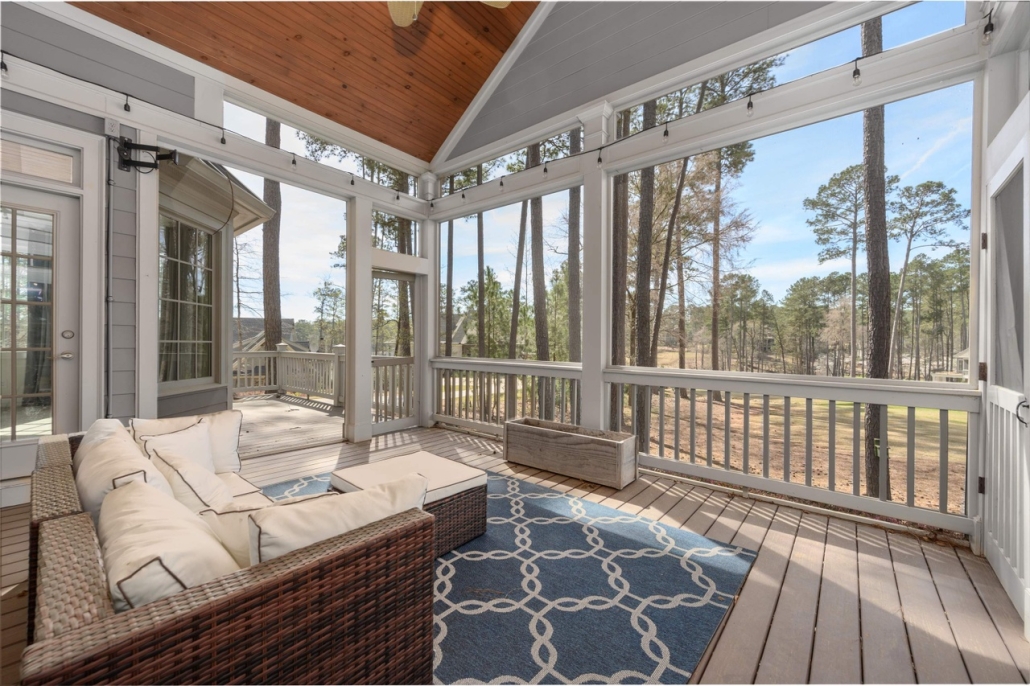 Outdoor spaces include a screened porch and an open sundeck, each overlooking tranquil preserve areas. Send me more about this home in Reynolds Lake Oconee!