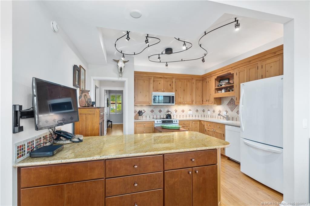 - Updated kitchen w/ granite-topped island, Corian countertops