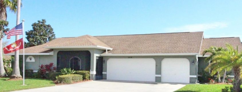 Set in the private, gated community of Indian River Colony Club in Melbourne, FL, this attractive Montpelier model has been expanded and accented with lush landscaping all the way around.