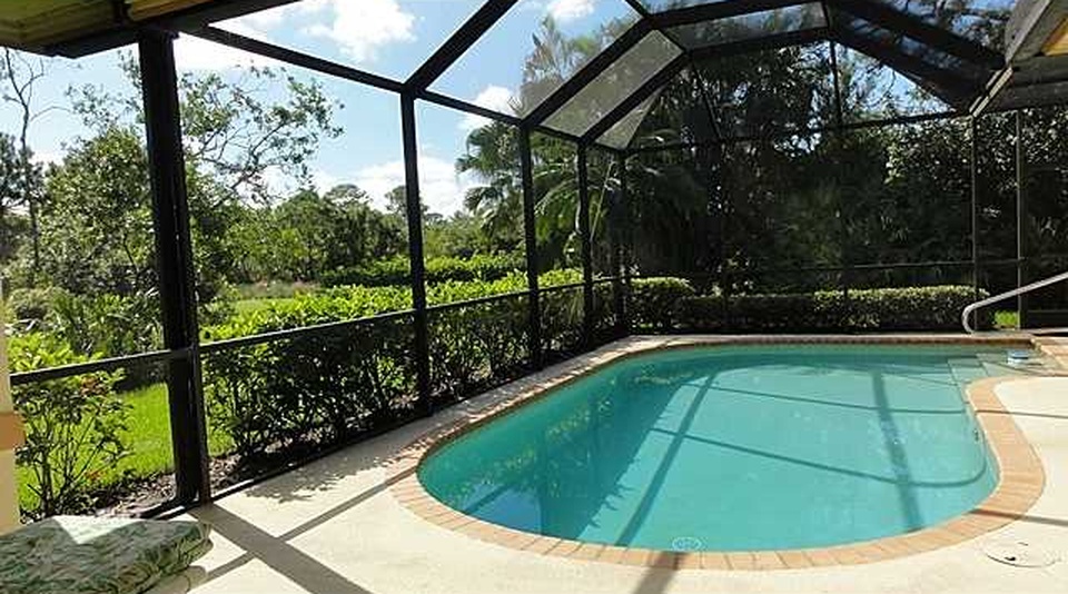 - Vaulted ceilings, custom tile, spacious pool/patio area