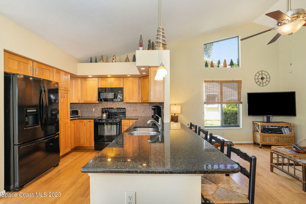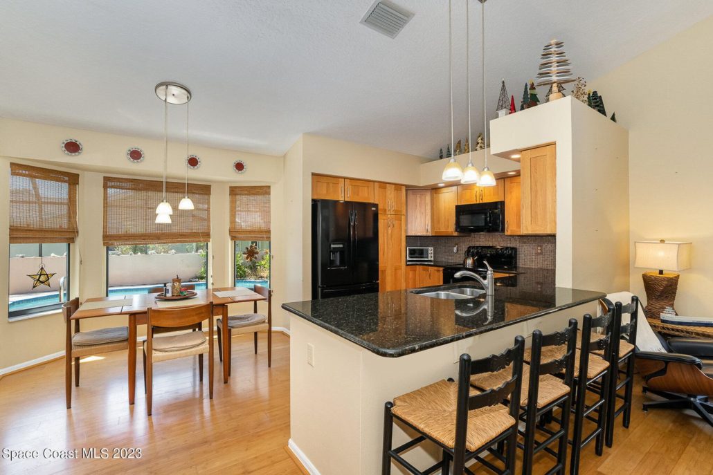 The kitchen has granite countertops, attractive honey oak cabinets and sleek black appliances. Send me more about this home in Indian River Colony Club!