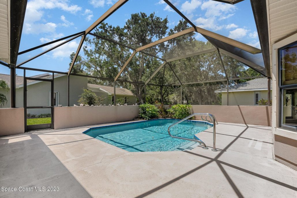 This single-level home at 1585 Independence Avenue in Indian River Colony Club, FL is a sought-after Phoenix Model with a private pool.