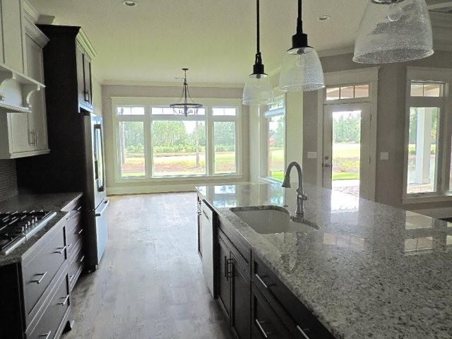 - Designer kitchen with oversized granite island, custom cabinets, stainless appliances
