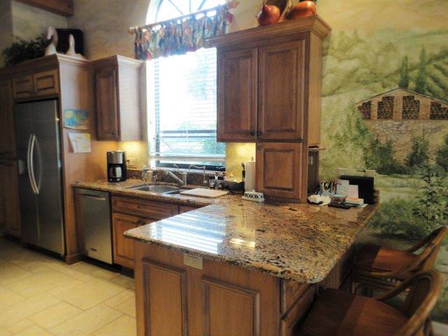 - Stainless steel kitchen appliances and granite countertops