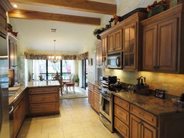 - Renovated kitchen with warm Tuscan-style appointments