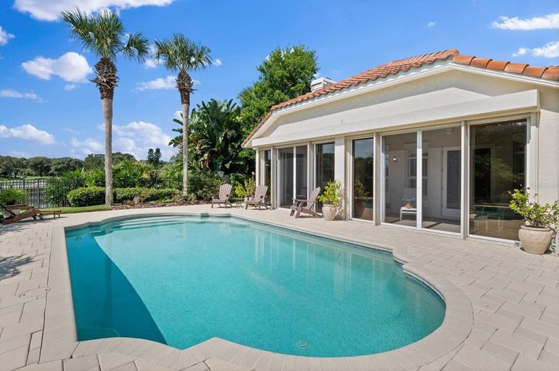 Its long list of amenities are topped by a private swimming pool and lanai with fireplace.
