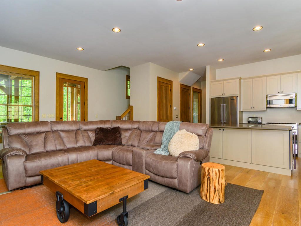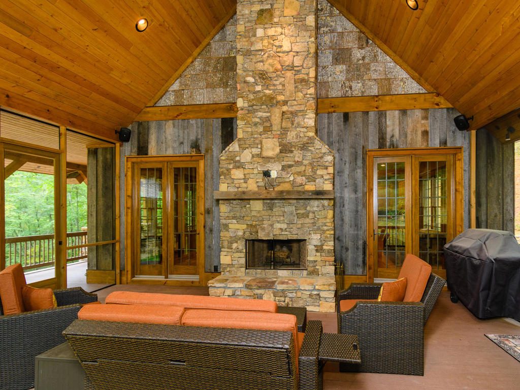 This Arts & Crafts-style cabin in the woods is located less than five minutes from club amenities, yet still feels remote. There is a creek that borders the front property line, providing relaxing water sounds.