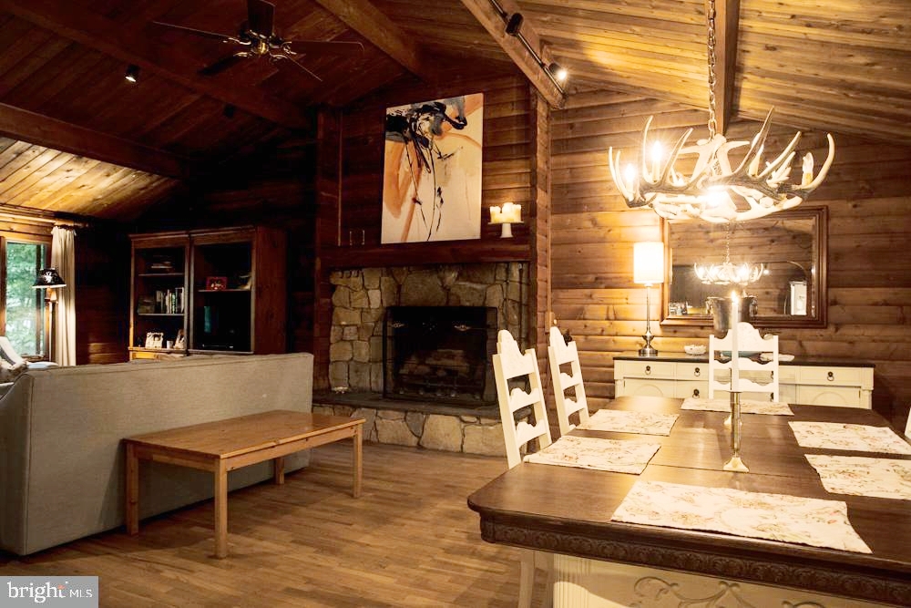 - Original beams, wood-burning fieldstone fireplace