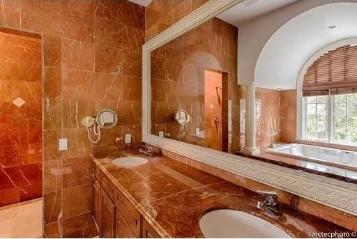 - Crown moldings, hardwood flooring, built-ins, imported marble tile