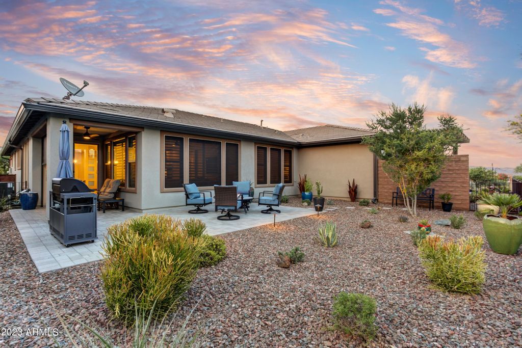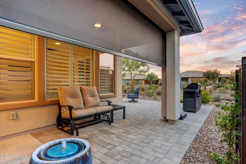 A sliding door from the great room leads to an outdoor entertaining area with covered patio. Send me more about this home in Trilogy at Verde River!