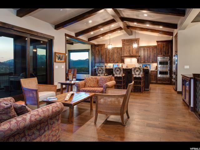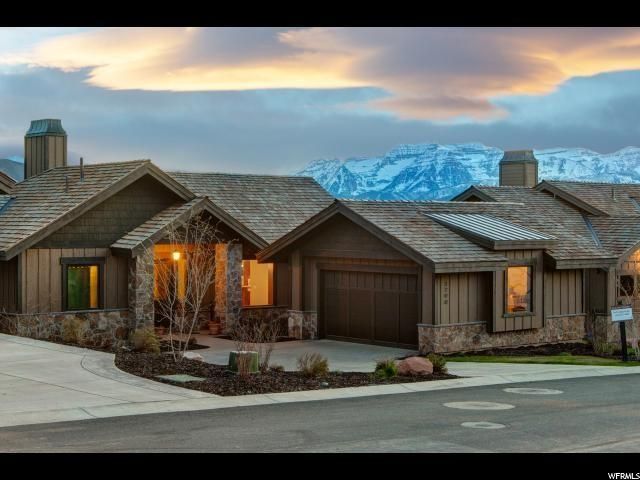 This 3,544-sf maintenance-free mountain home offers direct Mt. Timpanogos views, a covered deck and rustic exterior detailing. Outdoors is an entertainment area with firepit.