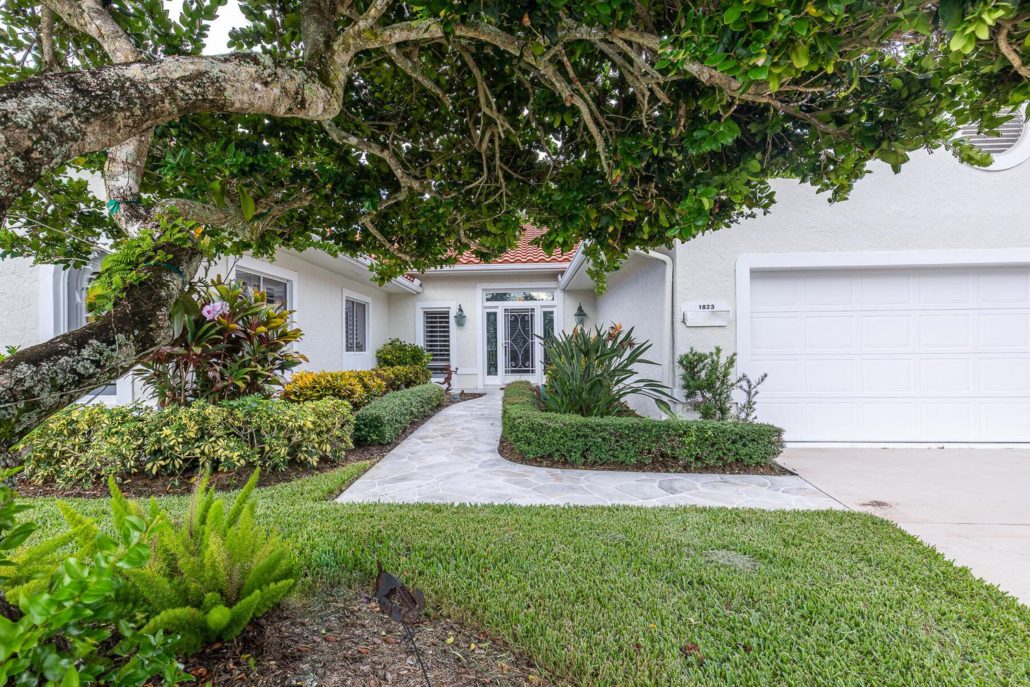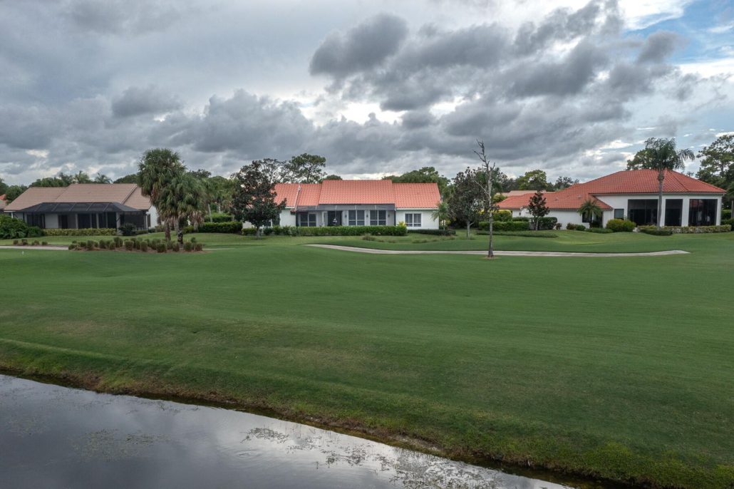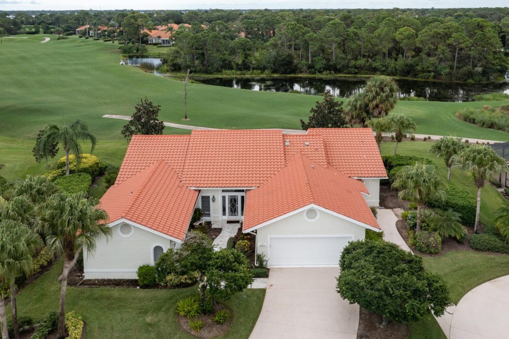 This 3,048-sf San Remo floor-plan home at 1823 NW Buttonbush Circle in Harbour Ridge Yacht & Country Club affords excellent views of hole No. 18.