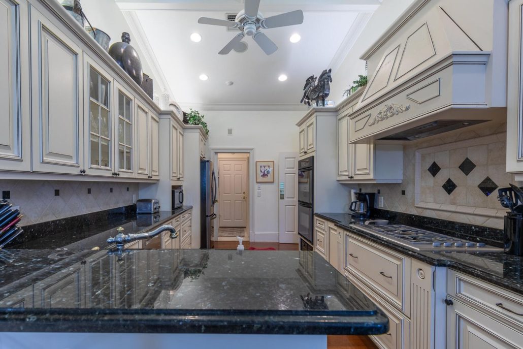 Chef’s kitchen includes a walk-in pantry, granite counters and double oven and a gas cooktop. Send me more about this home in Harbour Ridge!