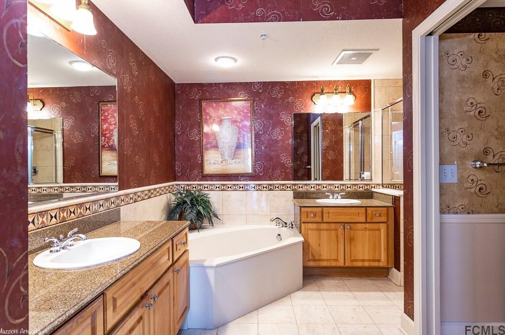 Standout features include wood tile, tropical fixtures and attractive coastal decor.