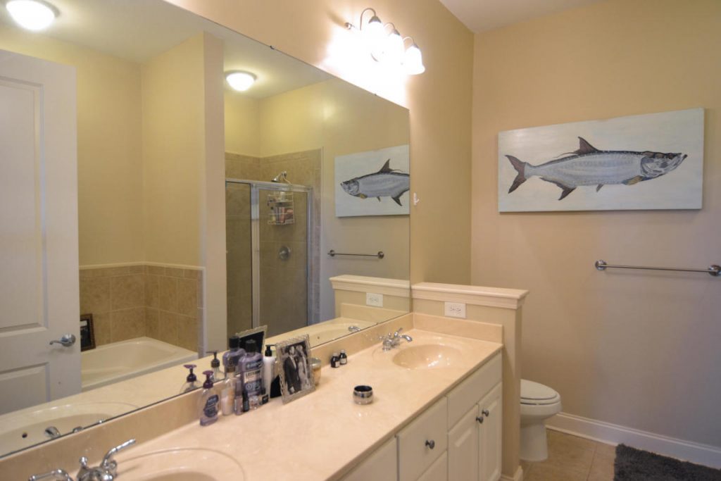 - Master bath with dual sink vanity, garden tub, separate shower and ceramic tile