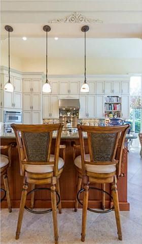 - Extensive crown molding and porcelain tile throughout living areas