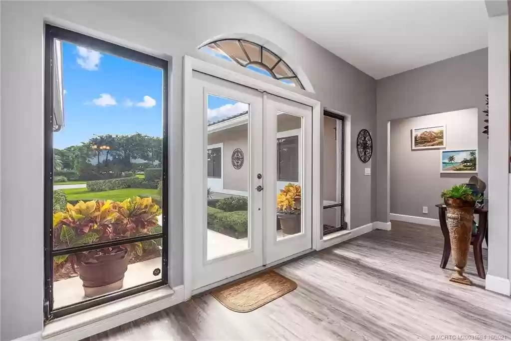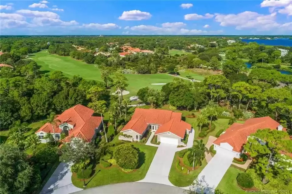 This San Remo model home at 2024 NW Laurel Oak Lane in Harbour Ridge is in a lush tropical setting with a golf course view.