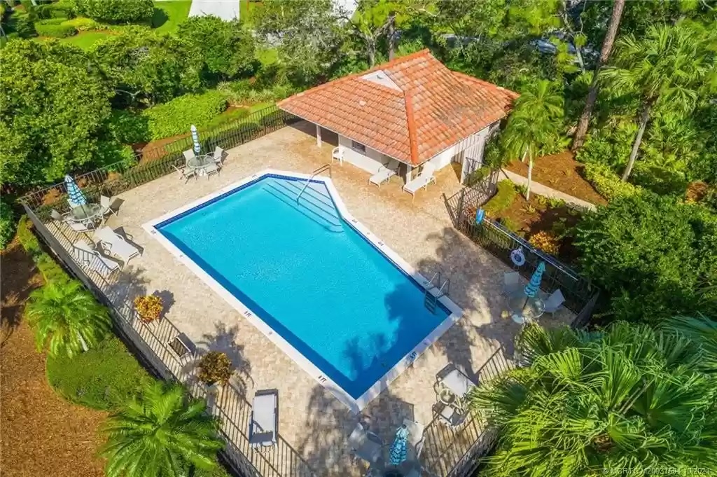 Spacious at 2,178 sf, it occupies a quiet cul-de-sac lot across from the community swimming pool.