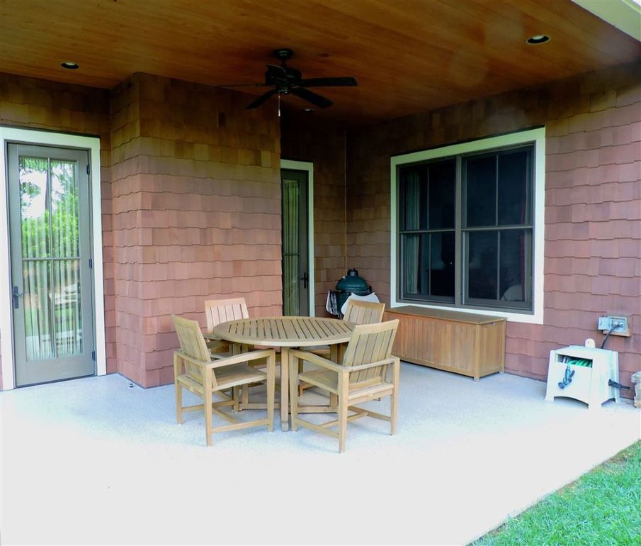 - Covered patio has a pebble tech floor finish