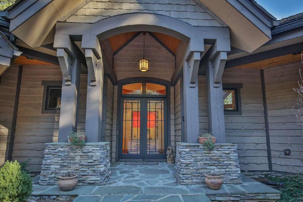This 4,800-sf custom estate home occupies a beautifully landscaped .94-acre site overlooking hole No. 14 of the club’s Jack Nicklaus Signature golf course. Natural finishes include a cedar shake roof, wavy rough-hewn siding and lightning turrets.