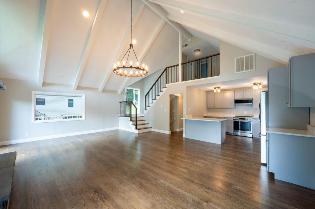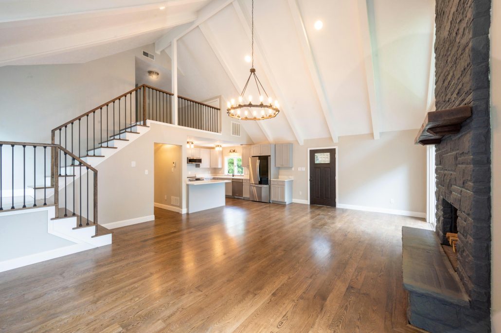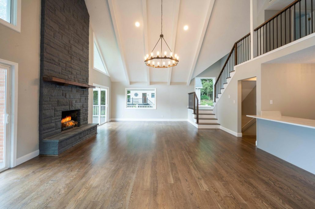 - Living room with raised-hearth fireplace