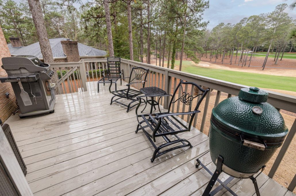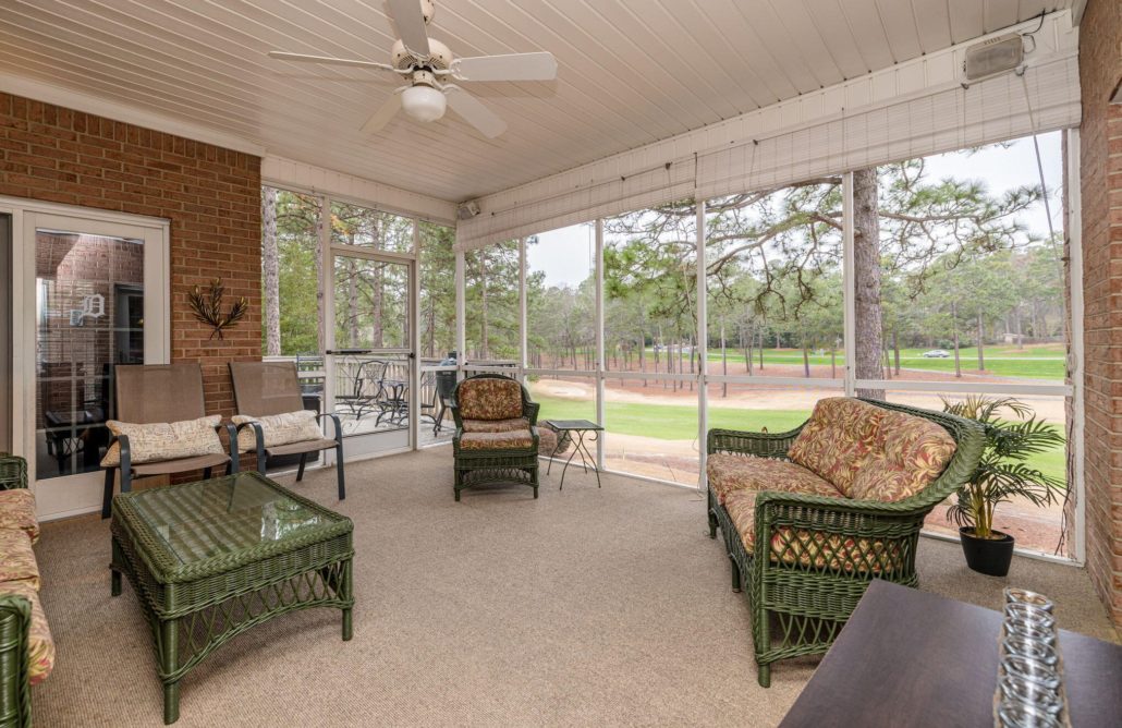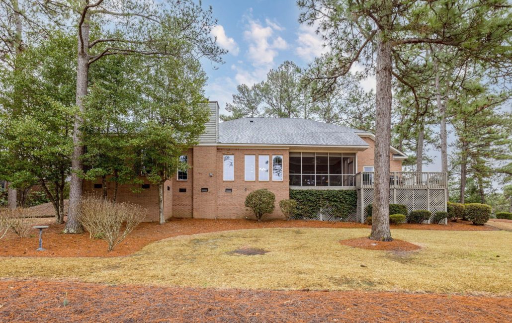 The half-acre lot is low-maintenance and shaded by tall Southern pines.