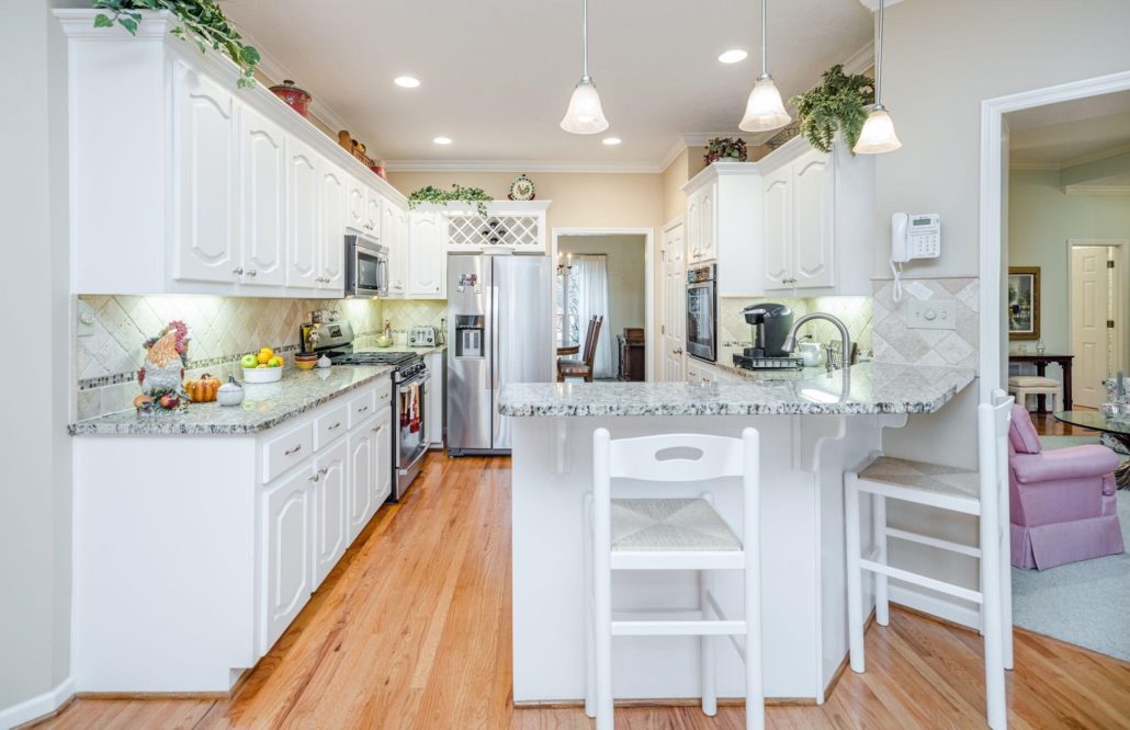 Improvements include an updated kitchen with custom cabinets and stainless steel appliances, plus an updated luxury bath in the owner’s suite.
